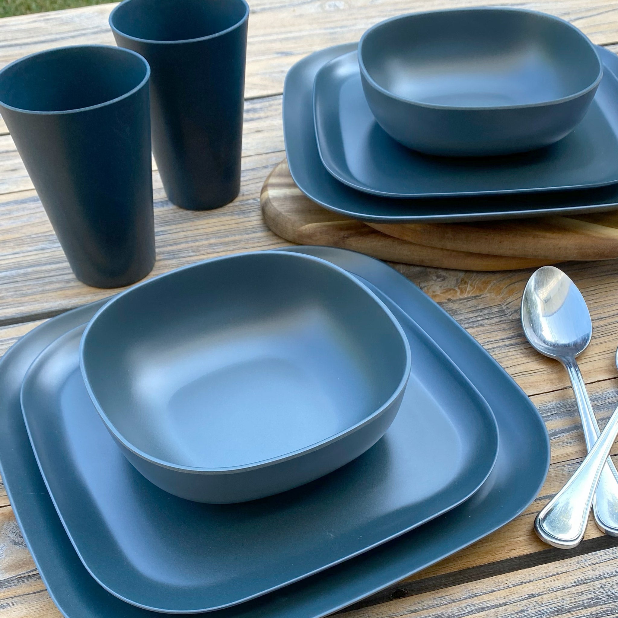 4 Piece Bamboo 22cm Plate Set | Midnight Grey